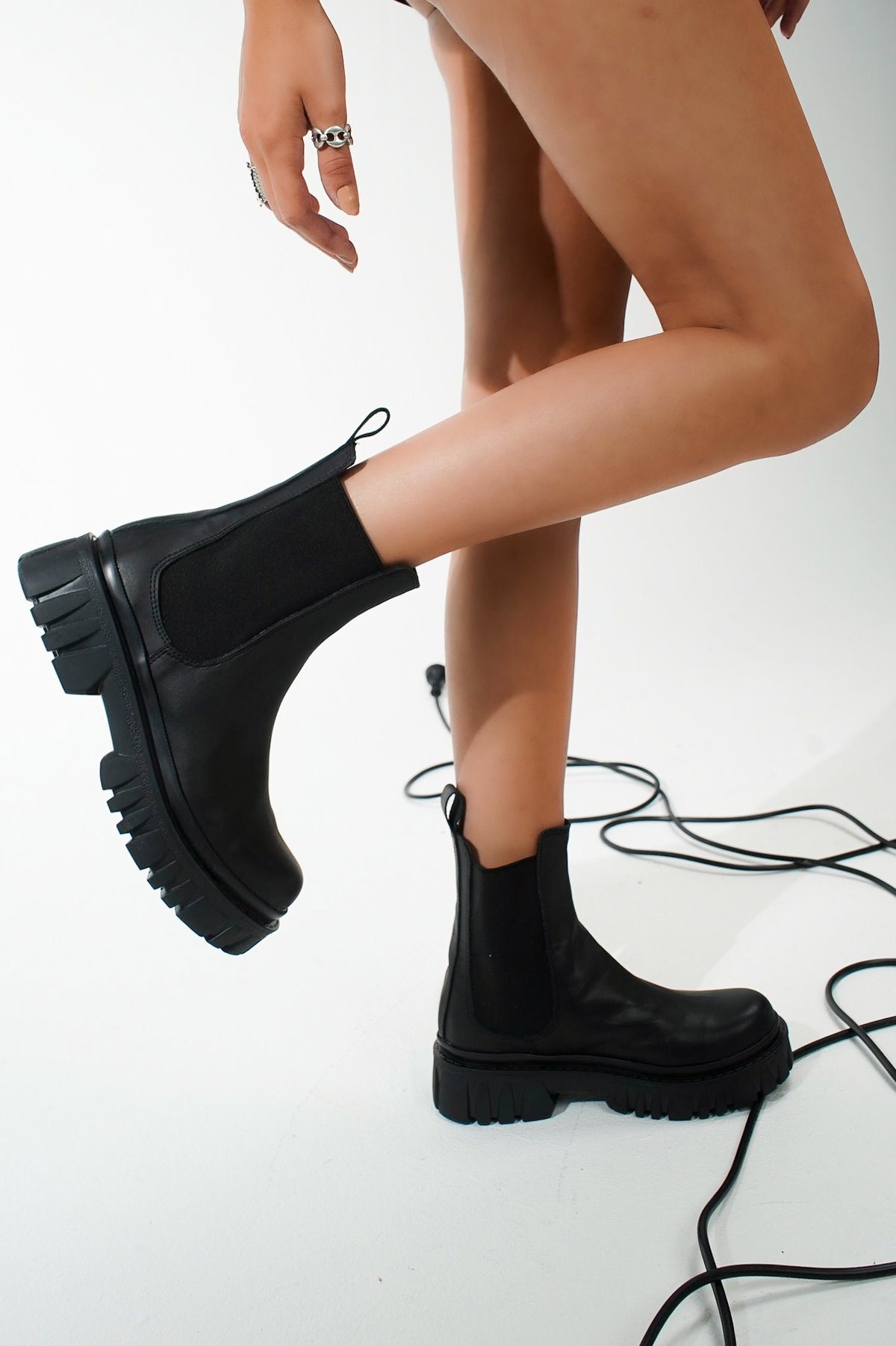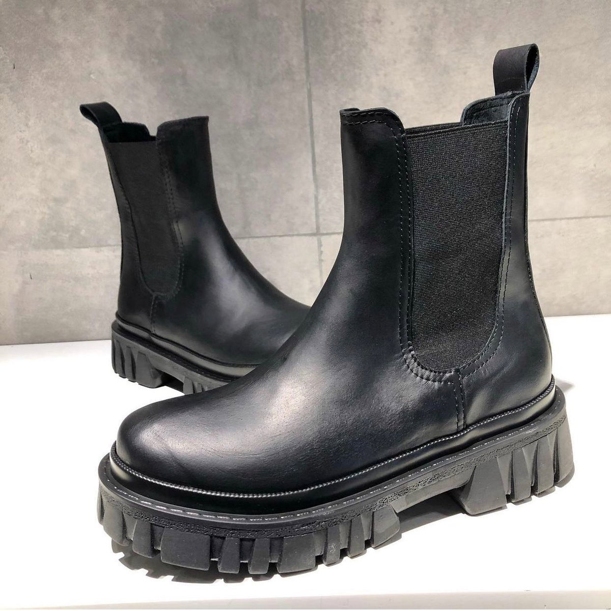 Borcego de cuero vacuno, con capellada de napa lisa. Base de TR.